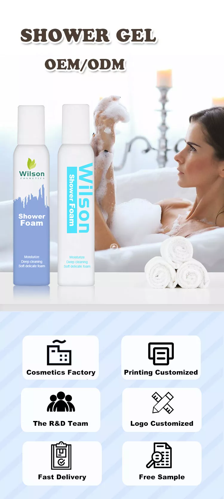 Táto dlhotrvajúca hydratačná sprchová pena Wilson s dlhotrvajúcimi bublinami využíva vákuové tesnenie, opakované použitie zložiek kyseliny hyalurónovej bez znečistenia, aby vám priniesla čistejší pôžitok z kúpeľa.