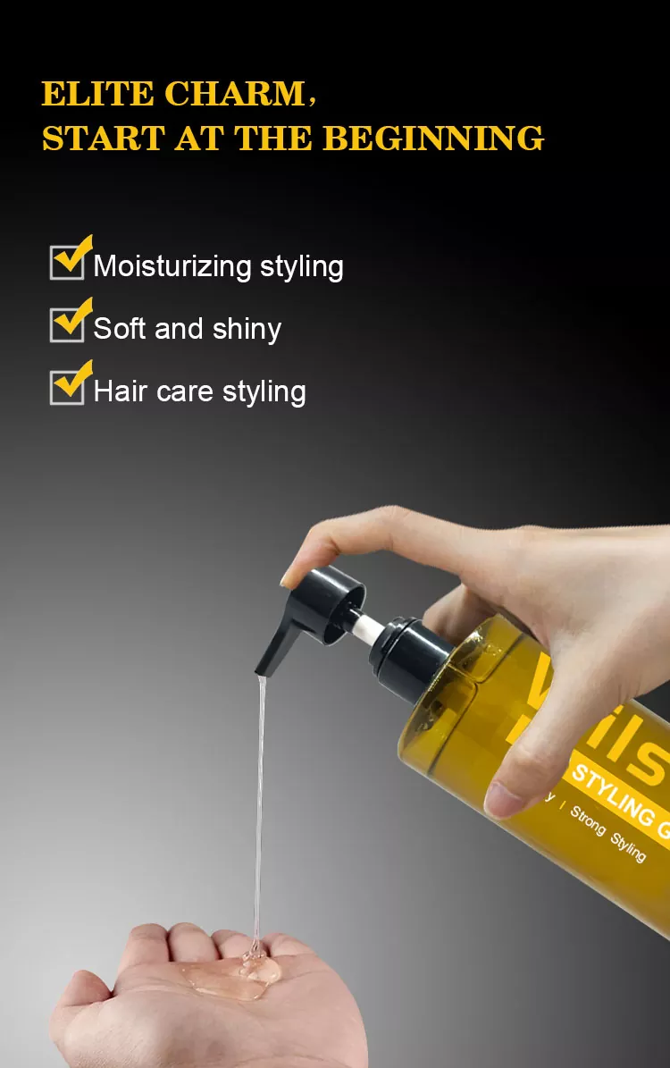 Pánska kozmetika Wilson Ultra Smooth Seamless Hair Styling Gel označuje vlasový styling a upravujúci účinok kozmetiky, nastriekanej alebo nanesenej na vlasy, odparovanie rozpúšťadla a sušenie na vlasoch za vzniku priehľadného filmu, aby vlasové vlákno vytvrdlo a udržalo tvar účelu, aby vyhovovalo potrebám rôznych účesov.