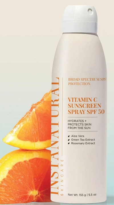 Tu je produkt s opaľovacím krémom, ktorý sleduje trend „kože“. Napríklad spoločnosť InstaNatural spustila svoj nový vzorec s opaľovacím krkom SPF 50 vitamínu C, ktorý poskytuje UV ochranu a hydratáciu v ľahkej váhe, vode a potu, ktoré sú obohatené o botanické látky, ako je vitamín C, aloe vera, zelený čaj a ružové extrakty, ktoré pomáhajú nourish a rozjasňujú pokožku, a tiež pomáhajú znížiť červeno. Balenie rozprašovania pomáha zaistiť rovnomerné pokrytie po celom tele.